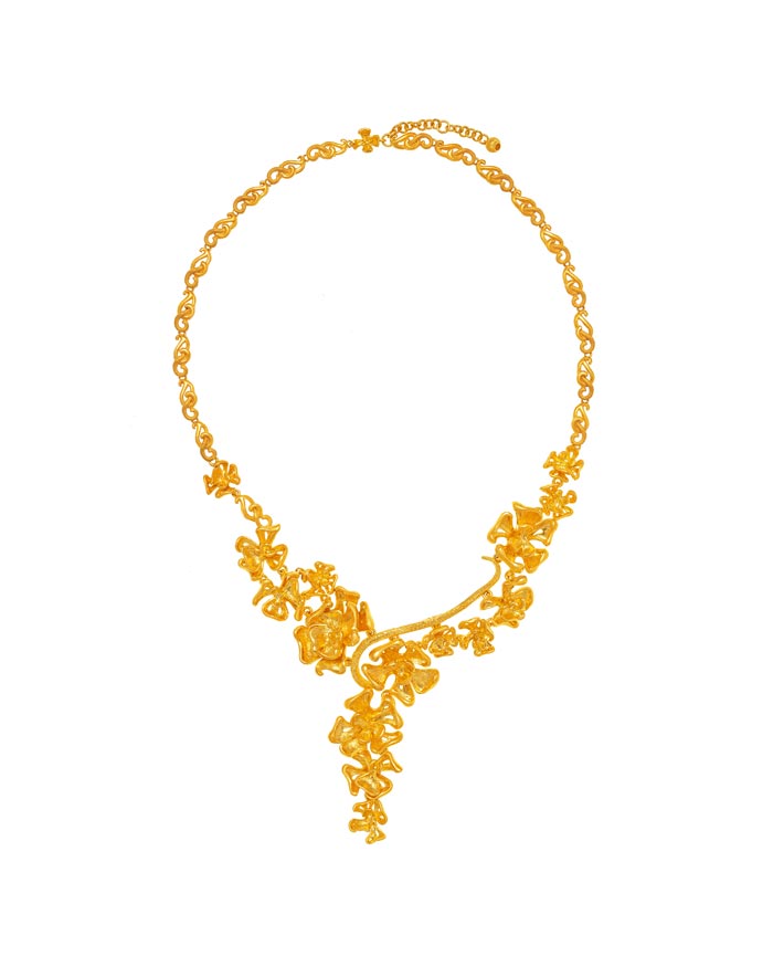 時至今日,金飾不再是局限於婚嫁或重要場合才佩戴的首飾,更是可以為日常造型錦上添花的時尚精品。「輕足金」首飾系列特別適合搭襯日常造型,帶動黃金成為可佩戴藝術品的潮流美學。至於工藝精湛的「蓮花系列」就特別適合婚嫁或重要場合,設計啟發自有君子之花美譽的蓮花,象徵出污泥而不染,飄逸而不染俗塵,予人清雅脫俗之感。
