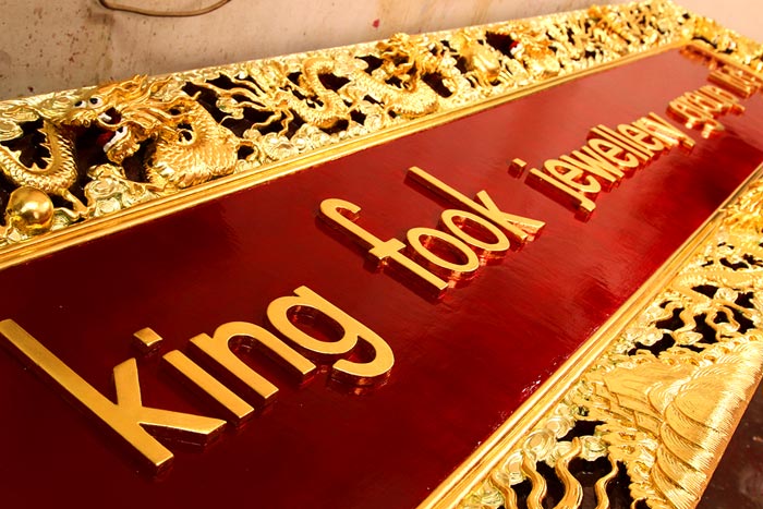 以全新面貌亮相的景福珠寶中環旗艦店,在大門上保留了自開業以來一直沿用至今的牌匾,牌匾上飾有9條栩栩如生的金龍雕刻,見證旗艦店逾半世紀風采,是象徵超過70多年品牌信譽的標誌。因此,景福珠寶特別聘請香港僅存、極具經驗的貼金工匠為其進行復修。工匠的貼金技術,工藝精考,為牌匾回復原來輝煌面貌,貼上逾數千塊青金與黄金金箔。另一方面,旗艦店內同時亦換上時尚舒適的全新裝潢,見證景福珠寶在承傳傳統製金技術及秉持信譽保證的同時,亦與時並進,前瞻未來。